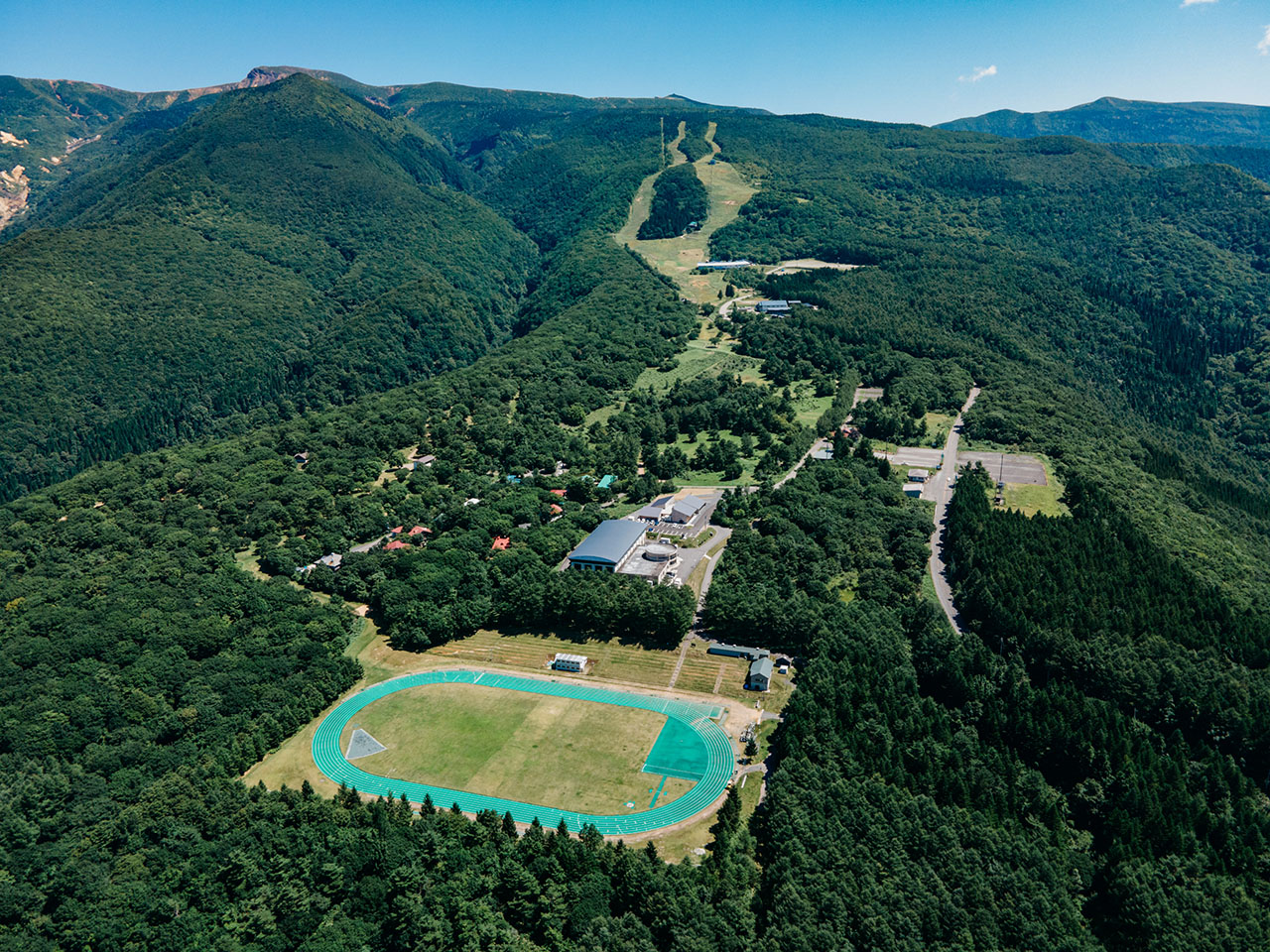 クロスカントリーコース、グラウンド、体育館、トレーニング場、宿泊施設がコンパクトに集約されたアスリートのための施設。合宿や高地トレーニングの導入に最適な場所となっています。