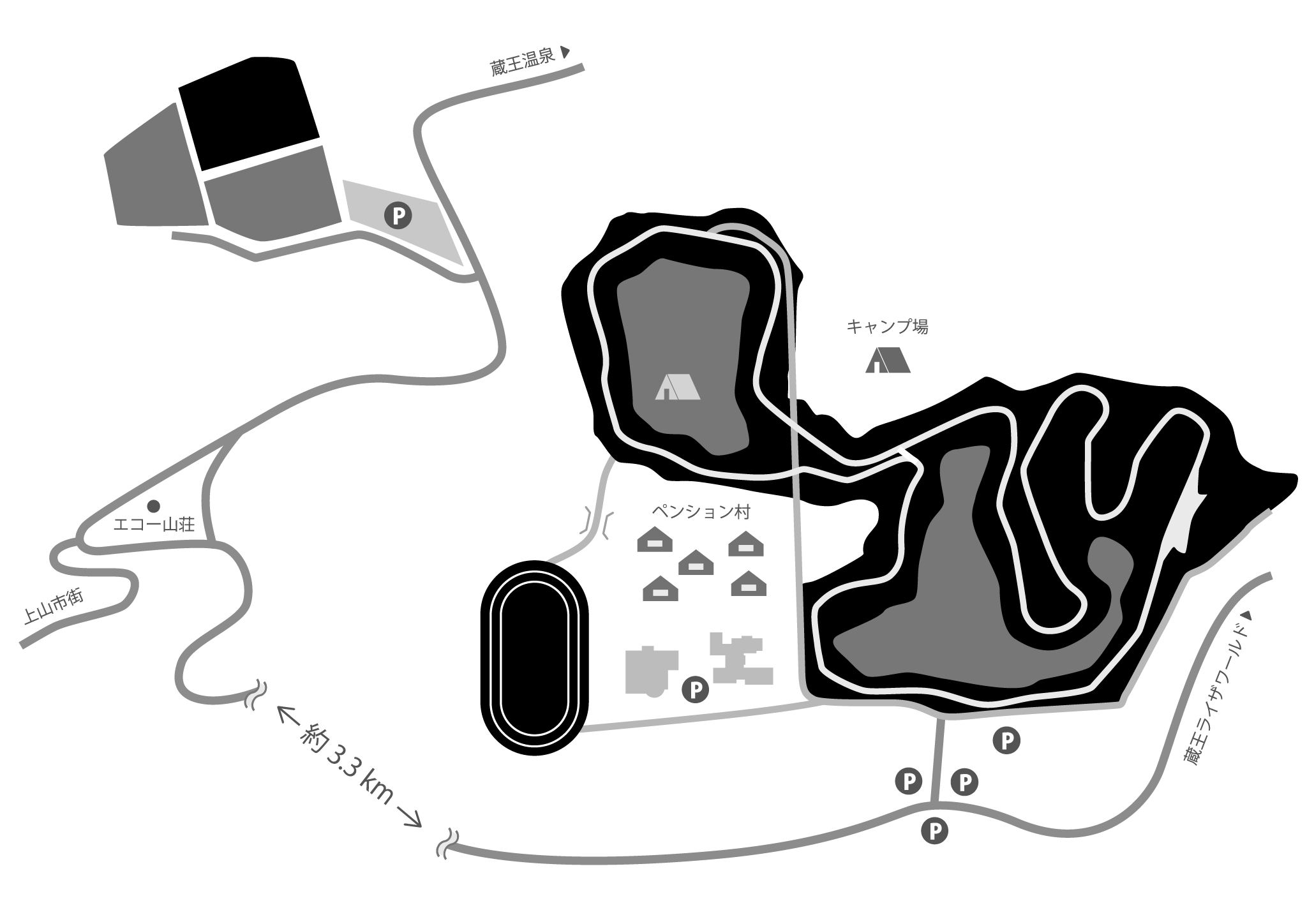 コース1周: 3km(2kmショートカットコース)
